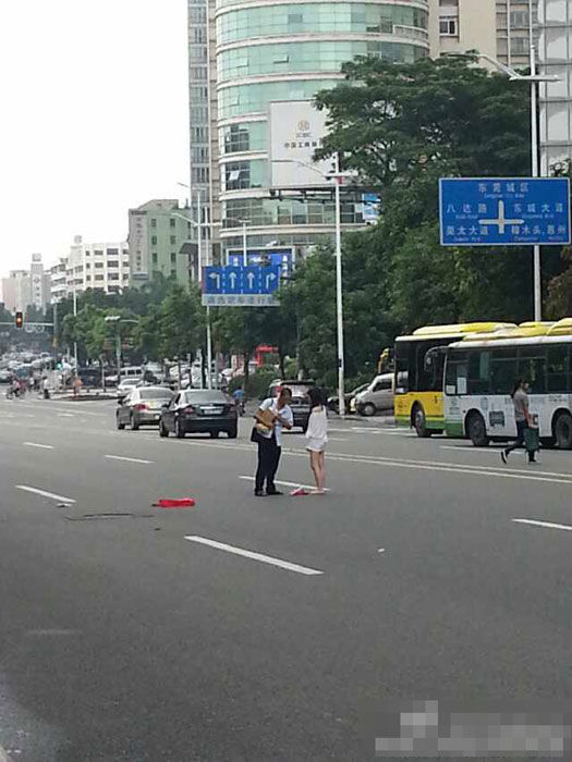 东莞一对情侣吵架 女方脱光衣服裸奔