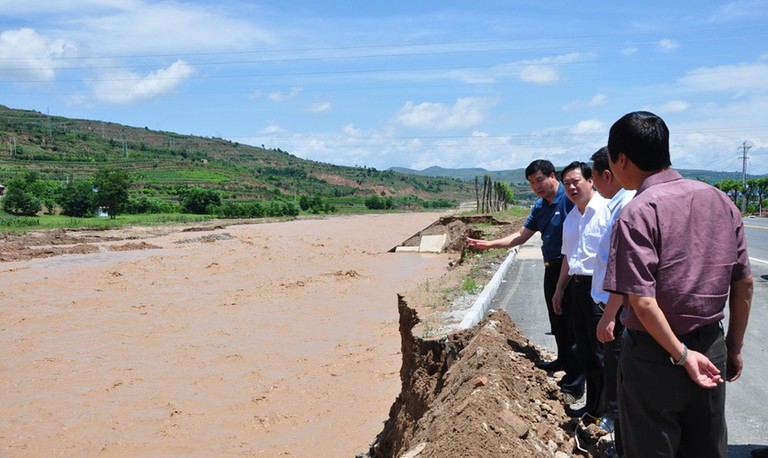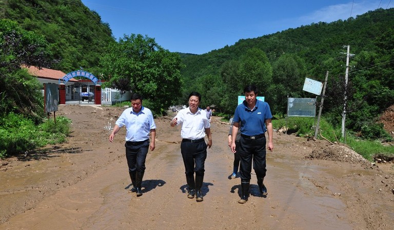(在清水县草川铺乡腰林村查看灾情)