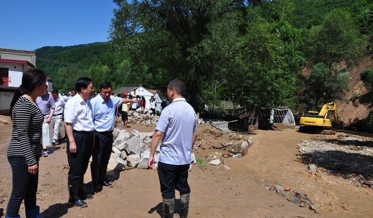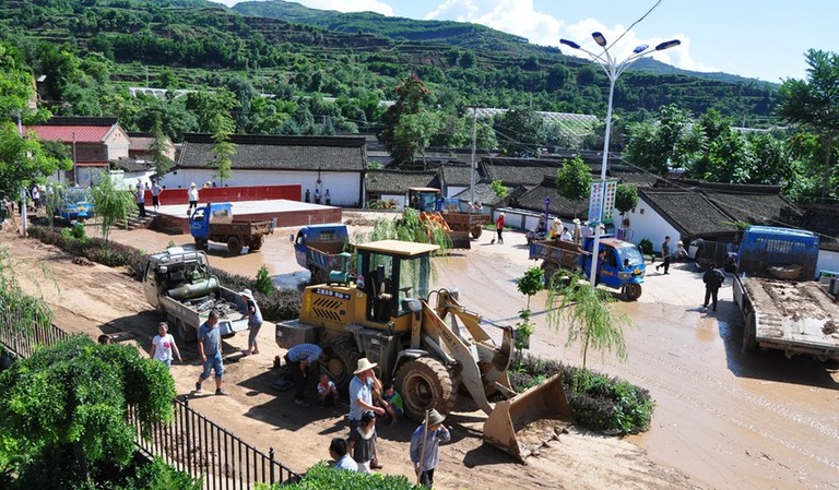 (清水县蔡湾村,村民积极开展抢险自救。)