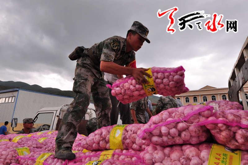 天天天水网岷县讯:记者何永德 灾害无情,人有情,7月24日,来自天水市的两车救灾物资驶入岷县救灾物资接收处中国当归城,天水市红十字会捐赠的价值2万元的大蒜及药品和天水爱心人士张陆、赵玉新、孔大龙等40名个人和玫瑰大酒店等三家单位捐赠的价值6.5万无的矿泉水、方便面和棉被,在带来天水人民对岷县灾区群众慰问的同时,也表达天水人民和灾区人民心连心共同抗震救灾的决心。