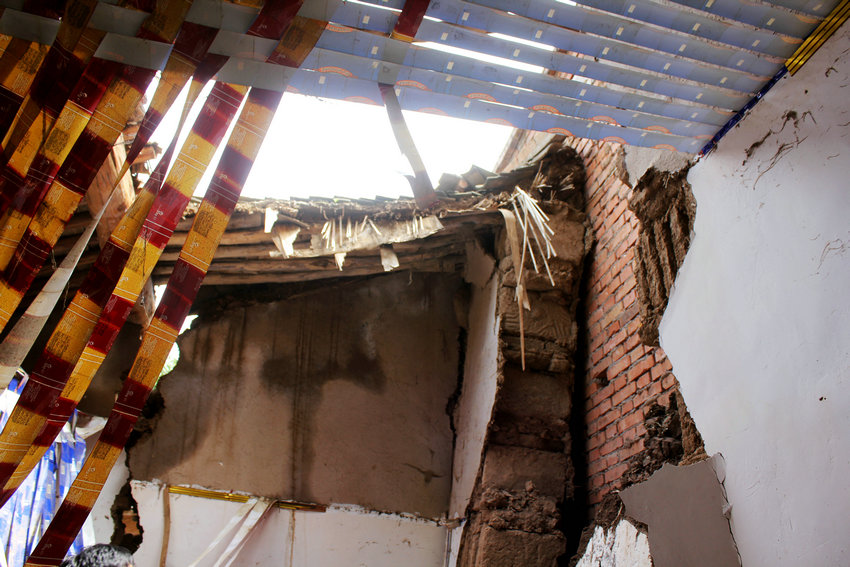 蔡建明一行先后深入木河乡上渠村、高山村及庄张公路张家川段察看受灾情况。记者一路跟随,不时可见滑坡的山体、倒塌的房屋、坍塌受损的路面、裂开的墙体……