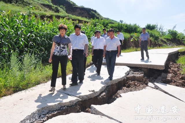7.21暴雨和7.22地震使秦安县受灾严重。7月23日,天水市副市长温利平深入秦安县受灾最严重的王尹乡、云山乡等乡镇,查看了解群众住房、道路、学校等受灾情况,指导抗灾救灾工作。市政府副秘书长董小明陪同。