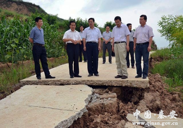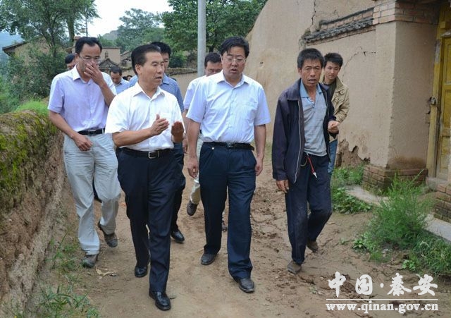 7月24日,天水市人大常委会主任柴金祥深入秦安县王尹、云山等乡镇,实地察看灾情,指导防汛抗灾和生产自救工作。市人大常委会秘书长张仲康、秦安县委书记王东红,县人大常委会主任郭海军、县政府副县长扇忠瑜及相关部门责人陪同查看灾情。