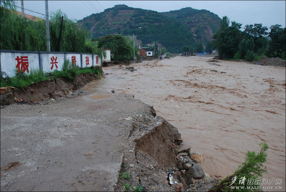 7月24日至25日,麦积区再次出现持续强降雨过程,颖川河、东柯河等多条河流水位上涨,多处桥梁、堤防、农田被冲毁,部分村庄房屋不同程度受损,甘泉、麦积等乡镇电力、通讯一度中断。