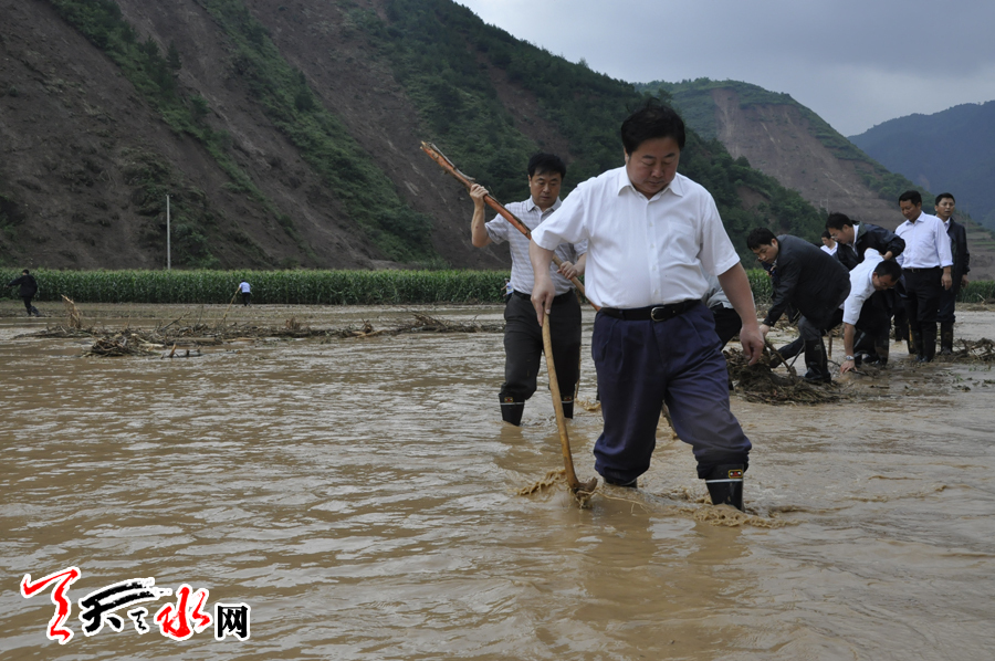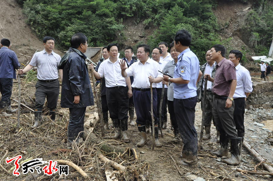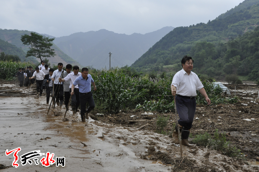 市委常委、秦州区委书记张明泰,市委常委、秘书长蒋晓强,副市长王钧一同察看灾情。
