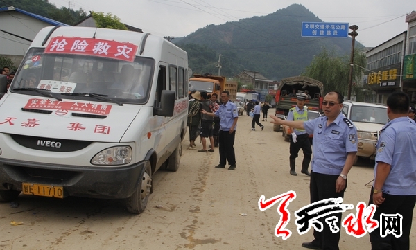 天天天水网讯(孙彦明 赵 焱)国道316线秦州娘娘坝镇境内路段因暴雨泥石流垮塌交通中断后,天水市郊区交警大队从7月25日7时起,迅速启动应急预案,紧急出动警力,赶赴泥石流受阻路段,冒着随时垮塌的泥石险情,参与抢险救灾,实施了交通疏导和安全保障重大勤务。