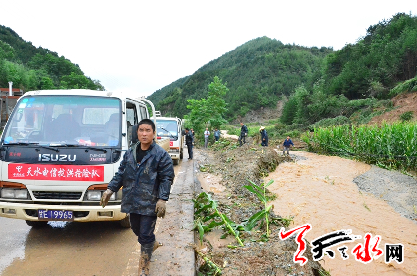 采访车始入稍子坡顶时,秦州公路段的几名养路工人正在用铁锹清理路面的淤泥。养路工人告诉记者,他们从早上7点开始的2个多小时时间里,已经清理了沿途的十余处滑坡。自灾情发生后,他们每天都在路段上不间断地工作,没有正常上下班时间。养路工人还热心地提醒我们:“车辆尽量离山体远一点,路上注意安全。”