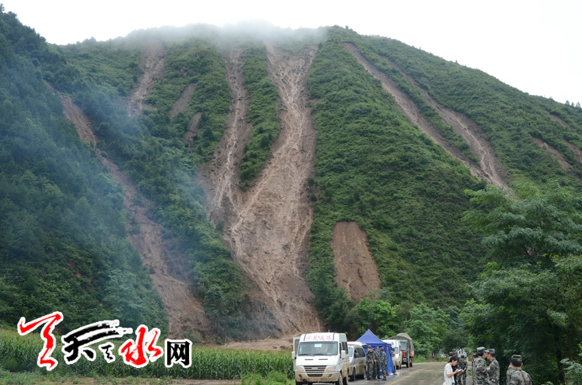 国道316线娘娘坝段泥石流交通受阻秦州郊区交警奋力疏导