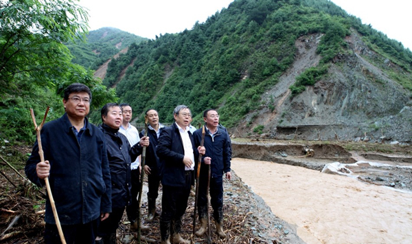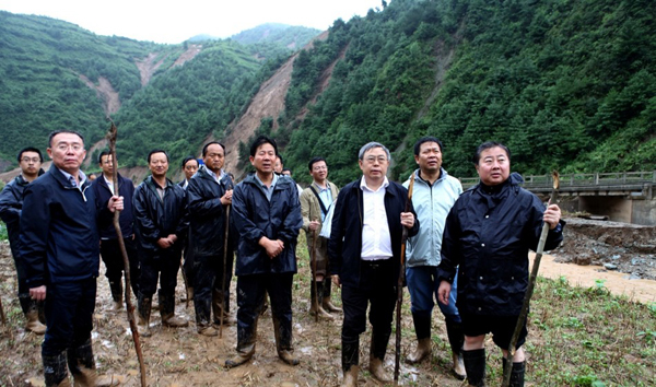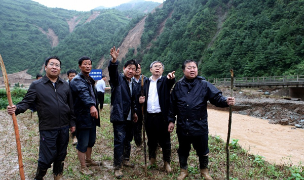 南峪村和荣光村是7月25日暴洪灾害的严重受灾村,不仅出现山体滑坡、道路水毁等灾情,还造成人员伤亡。在察看了刘家河村的灾民转移安置情况后,刘永富一行又踩着泥泞道路,步行来到南峪村和荣光村的山体滑坡和泥石流现场,冒着随时可能再次发生滑坡的危险,实地察看了解人员伤亡及抢救挖掘情况,慰问抢险救灾人员。刘永富嘱咐现场抢险救灾的驻市武警、消防、公安官兵和各级干部既要全力排险,施救被埋人员,也要注意自身安全。