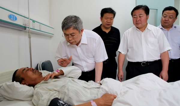当天下午,刘永富还到市第一人民医院看望了娘娘坝镇因塌方受伤的群众,关切地询问了伤员伤情,为他们送去了慰问金,嘱咐他们在医院安心养伤,祝愿他们早日康复。