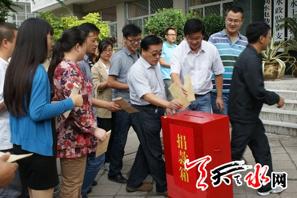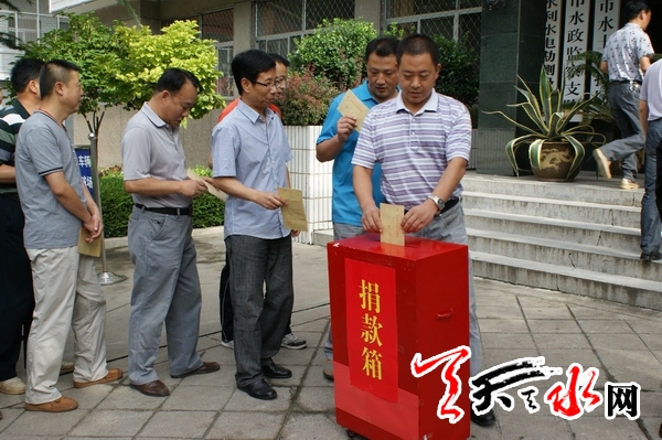 天天天水网讯(通讯员 漆艳)7月29日上午,天水市水务局大院内爱心涌动,该局组织全体干部职工开展抗洪救灾捐款活动,为秦州区娘娘坝镇“7.25”暴洪受灾群众献出一份爱心。