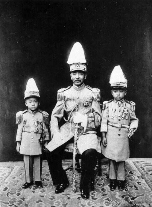张学良六弟张学浚1922年出生,肄业于北京辅仁大学,曾在国民党军统部门工作,新中国成立前夕迁往台湾,1973年在台湾去世。七弟张学英新中国成立前去台湾,后因贫病交加在香港去世。图为张作霖与张学浚(左)、张学森。