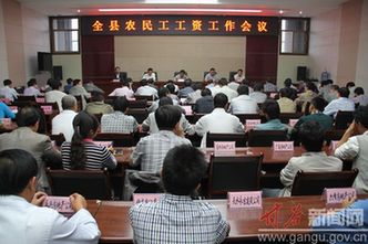 9月5日,甘谷县召开全县农民工工资工作会议,会议的主要任务是动员各乡镇、各有关部门进一步认清形势,明确责任,强化措施,有效预防和解决拖欠农民工工资问题,维护社会大局和谐稳定。