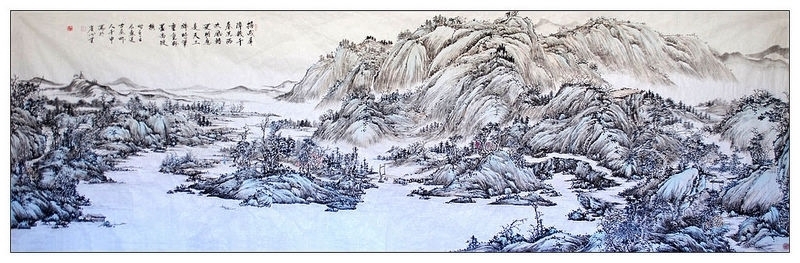自幼酷爱绘画、武术,用拳术“大开大合、吞吐自如、行云流水”之精要陶冶性情,兼文备武、写画论剑,成其豁达、不拘细节之个性,融两者之神于笔端。弱冠之年研读板桥写竹,浸技十载,成墨竹俊伟、飘逸、洒脱之特点,而立过后以“四王”画风为基,兼宋画之长、袭宋元古风,有清谈之雅,成工正、儒雅之风。用水墨变幻写景、意境营造为神,在清静中留自在、于自然中显性情,得“天人合一”之精要。
