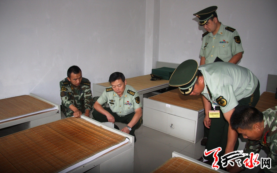 马元平同志在检查基层部队工作,他不仅对部属要求严格,更是严格自我要求