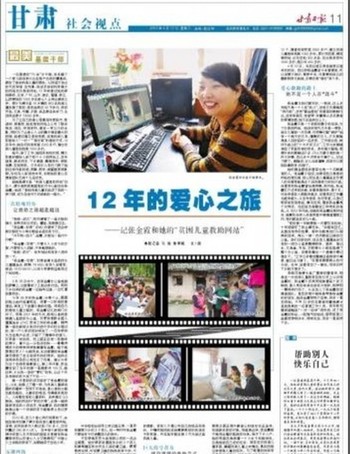一位普通的“70后”女干部,在目睹了一个婴儿因母亲大出血难产去世的遭遇后,萌发了救助贫困儿童的想法。从网络不发达时代的写信、发传真、电话求助到利用强大的网络创办救助网站,12年来通过她的牵线搭桥,北京、广州、山东、湖北、福建、浙江、山西等地的1000多名爱心人士伸出援助之手,累计为清水县18乡镇的863名贫困儿童实施了救助,救助金额达45万余元,资助书包、文具、书籍、衣服、食品等各类学习、生活用品累计76000多件。