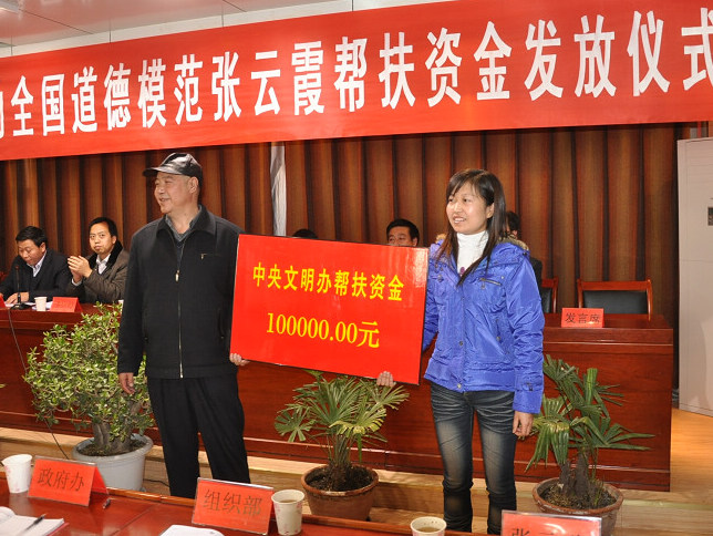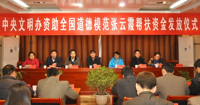 省文明办代表中央文明办向张云霞同志发放了10万元的帮扶资金。
