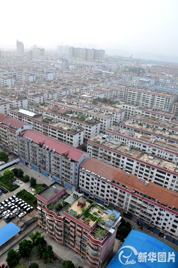 2013年9月12日,湖南省娄底市金谷市场,一栋楼房的屋顶建有玻璃走廊、凉亭以及游泳池等,凉亭的四周还种满了花卉、瓜果与蔬菜,俨然成为了一座“空中花园”。娄町/CFP