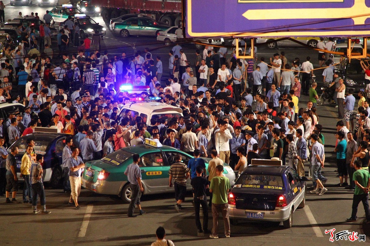 出租车司机电话通知其他出租车司机后,引发几十辆出租车围堵,现场有几百人聚集。经检测,事故车辆不存在酒驾问题,及时处理后,事态得到控制。
