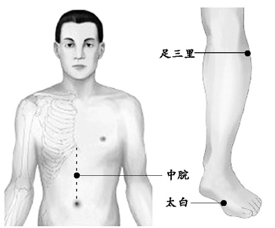 足三里穴:足三里是胃腑疾病和人体强壮要穴,位于小腿的外侧,膝盖骨斜下方。操作方法:每日按揉50-100次,以有酸胀感为宜,有健脾和胃、补中益气的作用。