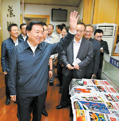 9月10日上午,省委书记、省人大常委会主任王三运来到本报新闻大厅,热情地跟大家打招呼,亲切看望采编人员。 本报记者田蹊房毅首席记者裴强摄