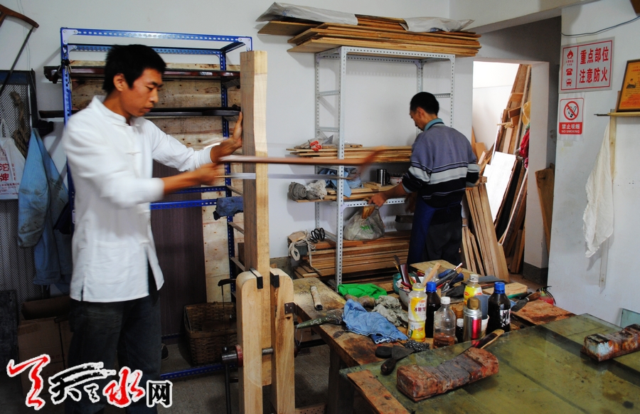 “我现在收到长期订单的客户很多,每天加班加点干都忙不过来。”作为我市古琴业界很有话语权的熊尚德来说,他对沿袭几千年的古琴弊端进行大胆改革,最重要的是方便快捷上弦调音。“栓在雁足上的七根弦的拉力要一百多斤重,以前,琴弦断一根,换根弦要费一天时间,而且调音也挺费劲。”熊尚德经数年揣摩和试验,终于解决了这一难题,并于1998被中华人民共和国专利局授予专利权。