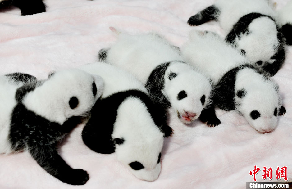 成都新生大熊猫宝宝集体登场