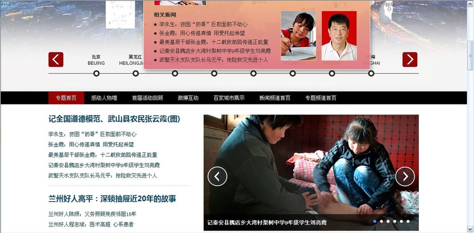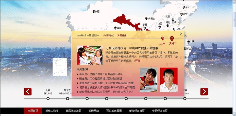爱传百城活动官网——中国网络电视台活动专题首页今日专题报道天水感人事迹