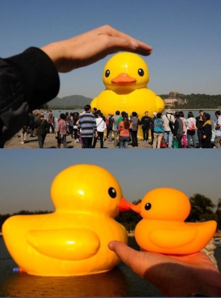 北京游客真有才 颐和园里这样玩大黄鸭