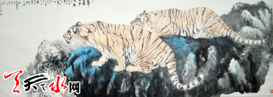 《威震寰宇》、《雄风》、《啸月》、《登高》、《双雄图》……一件件栩栩如生的写虎画作,令观者惊叹,更让人读出的是一种包含哲理的美,是一种蕴涵着主题意念的笔墨情感。