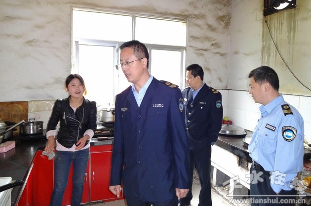 为切实做好“国庆”期间餐饮服务食品安全监管工作,天水市食品药品监督管理局及时细化工作方案,及早安排部署。近日,由王维云副局长带队对餐饮集中区、学校及托幼机构食堂、旅游景区及周边、高速公路沿线等重点区域的食品安全进行了全面监督检查。