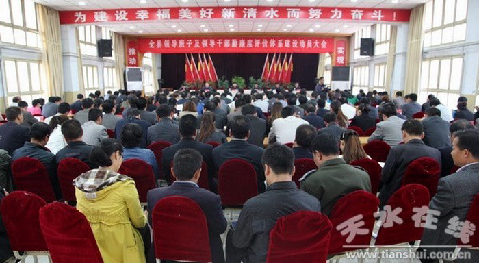 9月30日,清水县召开全县领导班子和领导干部勤廉度评价体系建设动员大会,认真贯彻落实省、市领导班子和领导干部勤廉度评价体系建设动员会议精神,全面部署并迅速启动清水县领导班子和领导干部勤廉度评价体系建设各项工作。