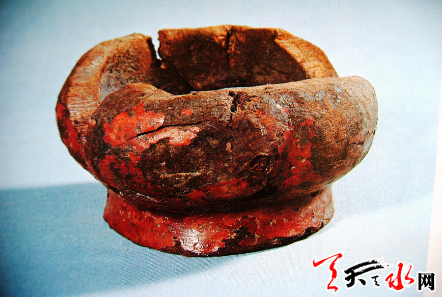 距天水牧马滩出土的2000多年前的木漆碗,木质已腐朽,但漆膜依然光鲜如初