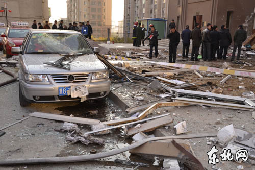 17日5时许,鸡西市龙山国际小区3号楼2单元住宅楼发生爆炸起火,造成多间房屋受损。
