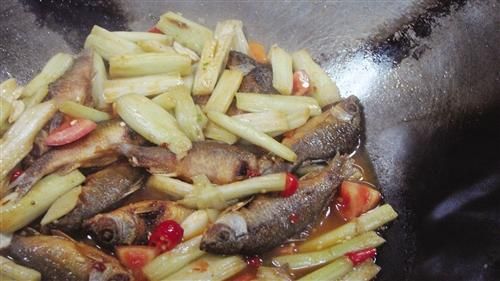 将芋檬腌制好,切成段待用。禾花鱼去腥,炸至金黄。热锅后,倒入姜蒜段后,放下泡椒芋檬、汤水焖制后出锅即成。
