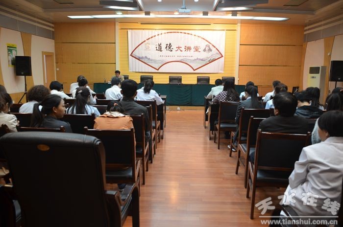 近年来,天水市中心血站非常重视职工整体素质的提高,开展了与之有关的一系列活动,这次讲座是道德讲堂系列活动的第五讲。诸多有益学习教育活动的开展,使职工的思想认识、业务水平、责任意识、整体思想道德素质明显提升,你追我赶、比学比干的氛围日益浓厚。职工综合素质的提升有力地推动了血站各项事业的发展,为无偿献血事业做出了积极贡献!