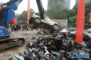 武汉销毁四千余万元奔驰宝马等豪车