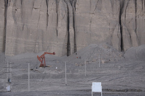 这面悬崖的中间两条裂缝即是被困男子被困处。 艾则孜江 摄