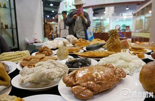 | 杭州工艺展会现石头做的汉堡包 | |