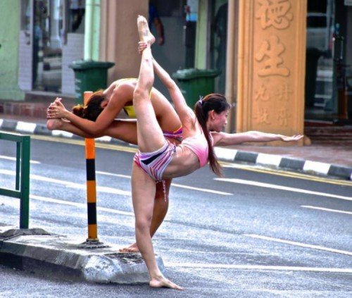据东森新闻网报道,新加坡两名穿着性感的女子,最近频频出现在公共场合,大秀劈腿、一字马等高难度动作,原来她们是为新开张的瑜珈教室做宣传,照片PO上网后也引发热烈讨论。