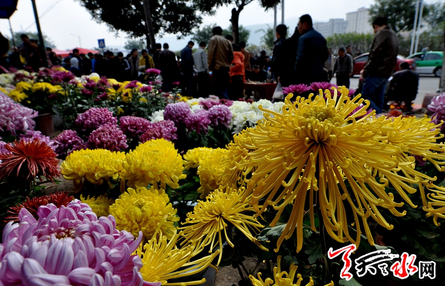 “淡巷浓街香满地,案头九月菊花肥” ,金秋十月,秋风送爽,金菊飘香。红楼万卷 、石莲吐火 、天香毓秀等近百个不同的菊花品种流光溢彩、金碧辉煌。层黄叠翠、吸引了众多市民前来欣赏留影。 天天天水网 记者何永德摄