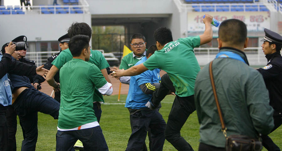 2013年10月27日下午,山东省枣庄市,在刚刚结束的一场事关冲甲的中乙半决赛中,河北中基0-1负于山东滕鼎,但还是凭借首回合两球的优势冲甲成功。山东球迷面对主队赢球被淘汰,情绪激动,赛后两队球迷冲入球场殴斗,由于山东球迷数量优势巨大,河北球迷被围殴,场面混乱不堪。后滕州特警火速行动,才防止了事态进一步扩大。