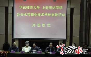 天天天水网讯【记者 王晓馨】10月28日,华东师范大学、上海外国语大学贤达经济人文学院在市职业技术学校开展支教活动。天水市副市长蔡建明出席开班仪式。