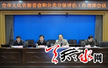 天天天水网讯【记者 马放】10月28日,天水市召开全市文化资源普查和分类分级评估工作视频会,会议通报了《天水市文化资源普查和分类分级工作实施方案》、《天水市文化资源分类分级方案》,对下阶段工作进行了安排部署,中共天水市委常委、宣传部长、市文化资源普查和分类分级评估工作领导小组组长彭鸿嘉出席会议,天水市副市长、领导小组副组长霍卫平主持会议。