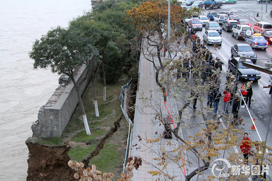 兰州主城区百米河堤塌陷