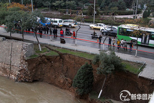 2013年10月28日下午4时20分,兰州市北滨河路城关黄河大桥西侧近百米河堤发生垮塌。事故发生后,兰州市各部门迅速赶往现场研究部署抢险工作,交警部门则在第一时间对北滨河路由西向东半幅道路进行了临时封闭。据悉,此次塌方事故原因初步断定为黄河河水冲刷所致。目前,抢险工作仍在紧张进行当中。图片来源:CFP