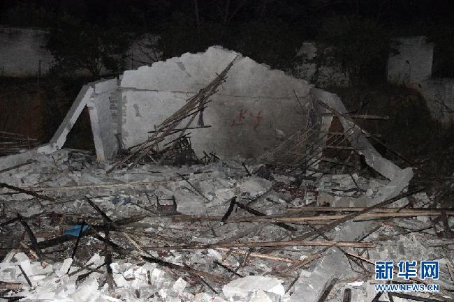 11月1日拍摄的岑溪市三堡镇车河村炮竹厂爆炸事故现场。11月1日16时许,岑溪市三堡镇车河村炮竹厂发生一起爆炸事故。新华社发(马震宇 摄)