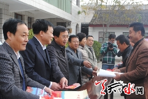 在贾家寺村阵地,市领导王光庆、雷鸣为秦州区乡镇和行政村代表发放了《工作手册》和系列宣传画。王光庆要求,各县区要及时将《工作手册》送到各乡镇、村和参与换届的工作人员手中,加强对换届选举相关政策、法律法规、工作程序和纪律要求的培训,切实提高实际操作水平。各乡镇和村要把系列宣传画张贴在公示栏、宣传栏和村阵地醒目位置,让党员群众了解换届精神、积极参与换届。要通过广播、电视、网络等新闻媒体和办宣传栏、书写黑板报、编排文艺节目等形式,广泛宣传村两委换届选举工作,激发党员群众参与换届的热情,真正选出坚强有力、公道正派的村两委班子,带领广大党员群众脱贫致富奔小康。