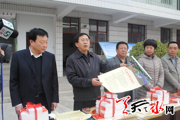 在贾家寺村阵地,市领导王光庆、雷鸣为秦州区乡镇和行政村代表发放了《工作手册》和系列宣传画。王光庆要求,各县区要及时将《工作手册》送到各乡镇、村和参与换届的工作人员手中,加强对换届选举相关政策、法律法规、工作程序和纪律要求的培训,切实提高实际操作水平。各乡镇和村要把系列宣传画张贴在公示栏、宣传栏和村阵地醒目位置,让党员群众了解换届精神、积极参与换届。要通过广播、电视、网络等新闻媒体和办宣传栏、书写黑板报、编排文艺节目等形式,广泛宣传村两委换届选举工作,激发党员群众参与换届的热情,真正选出坚强有力、公道正派的村两委班子,带领广大党员群众脱贫致富奔小康。