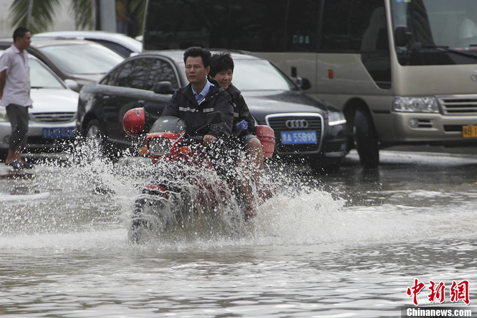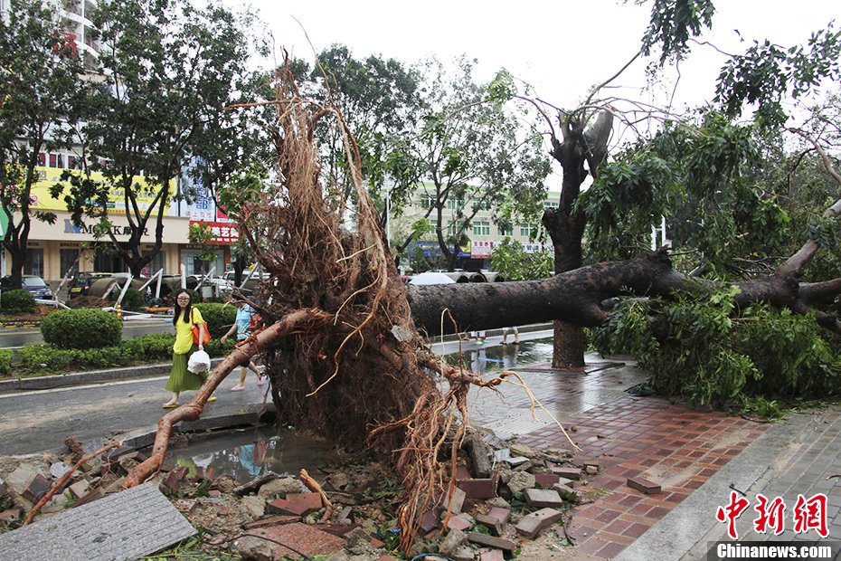 中新网三亚11月11日电(记者 尹海明)今年第30号台风“海燕”10日携风雨袭击三亚。记者11日在三亚看到,台风过后,三亚街道两旁一片狼藉,到处都是被风刮倒的合抱大树,树枝散落街头。三亚金鸡岭路、河东路、荔枝沟路、凤凰路等多个路段仍有大量积水,车辆通行缓慢。